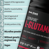 اسید ال گلوتامین بادی اتک BUDY ATTAC 100% PURE L-GLUTAMIC ACID اسید آمنه لازم برای رشد عضلات را در اختیار شما قرار می دهد. ال گلوتامین 100% خالص به عضلات شما کمک می کند تا ریکاوری شوند. اسید آمینه در متابولیسم پروتئین در فرایندهای مهم ریکاوری و ساخت عضلات نقش دارد. تامین گلوتامین کافی برای بدن به عنوان یک ماده سازنده برای عضلات یکی از کارهایی است که باید در نظر داشته باشید.