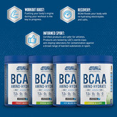 آمینو هیدرات حاوی اسیدهای آمینه ضروری شامل : ال-لوسین، ال ایزولوسین و ال-والین هستند که در سنتز پروتیین نقش اصلی را ایفا می کنند و همانطور که می دانید پروتیین هم نقش مهمی در رشد ، تقویت ، تزمیم و بازسازی بافت های عضله را دارد.